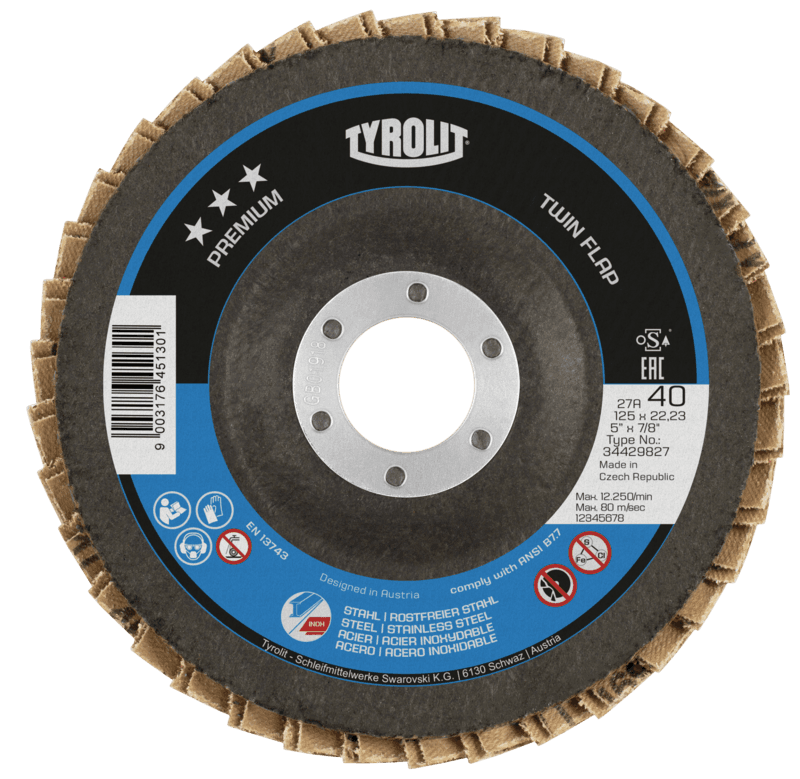 Flap disc Premium TWINFLAP for steel and stainless steel